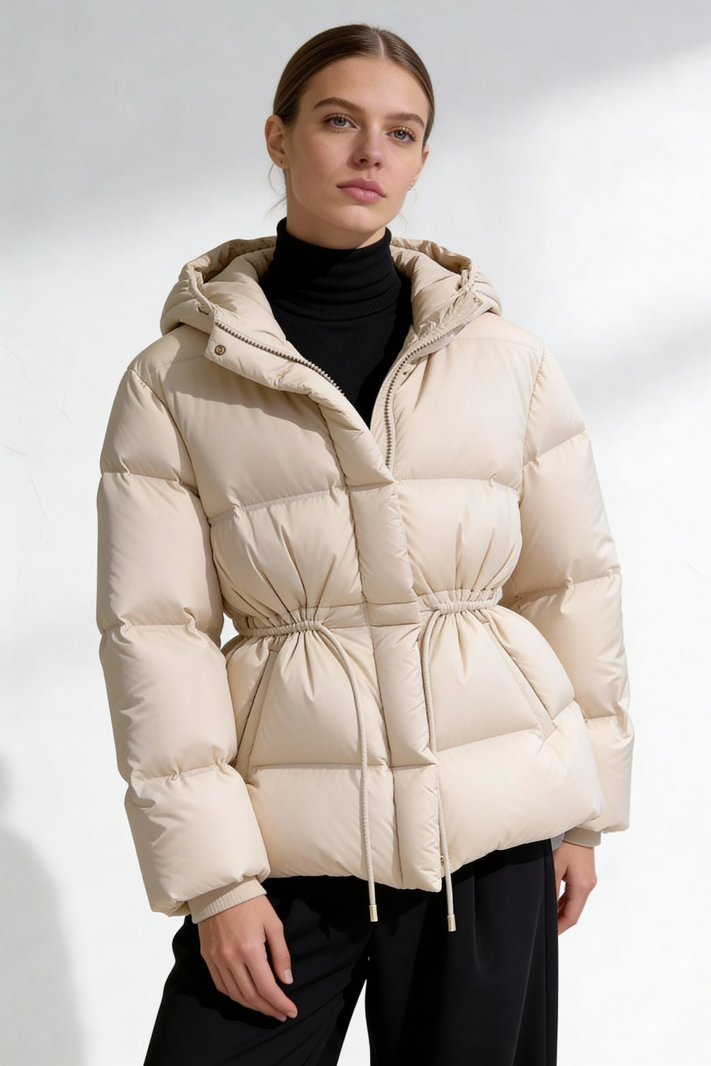 Designed to balance warmth, comfort, and modern femininity, this women’s puffer jacket is your everyday winter essential. The lightweight insulated construction delivers reliable cold-weather warmth, while the adjustable cinched waist creates a flattering silhouette without bulk. Finished with a cozy hood and smooth quilted texture, it’s the perfect jacket for city days, travel, and effortless winter layering.