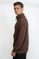 Ellis Cotton Zip-Up Sweater Jacket - Brown