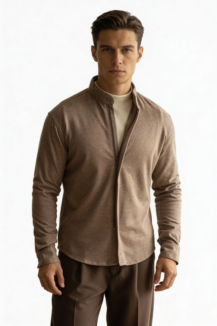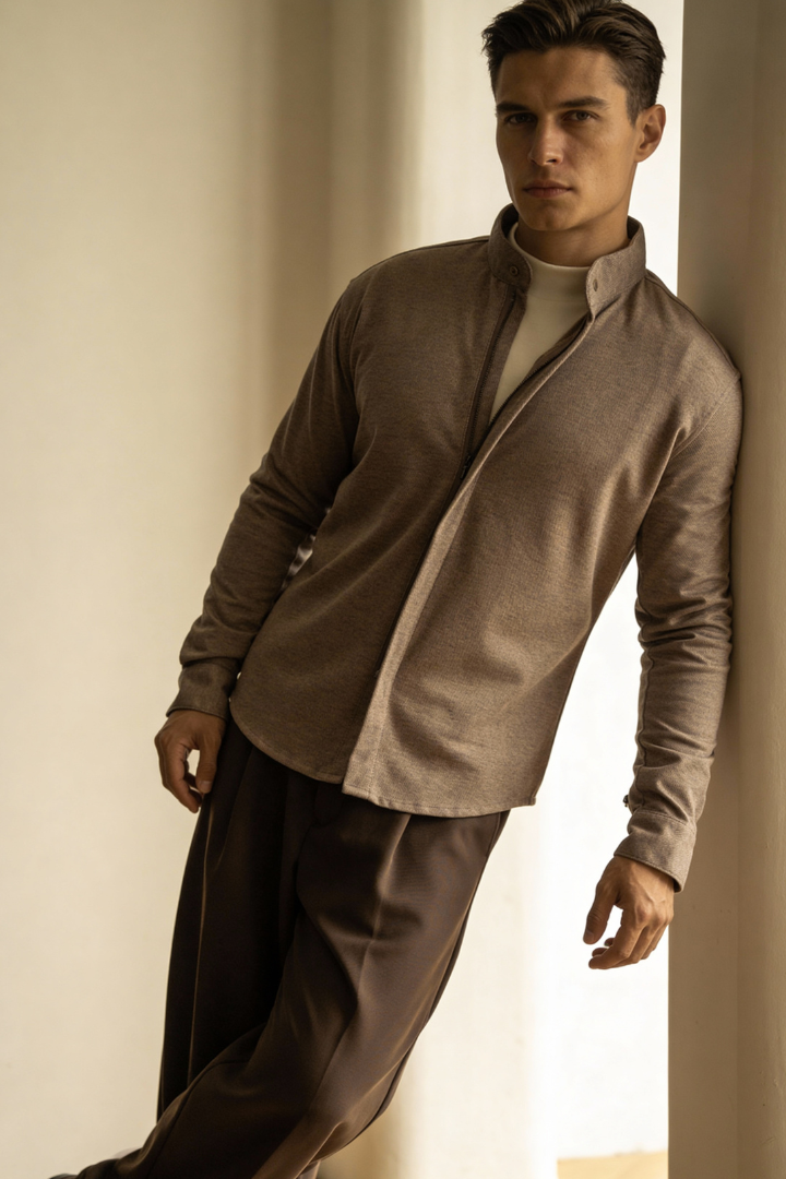Designed for modern everyday wear, this men’s lightweight viscose blend jacket combines soft comfort with a clean, refined silhouette. The smooth, breathable fabric offers a relaxed feel while maintaining a polished appearance, making it ideal for layering across seasons. Finished with a minimalist zip-front design, it delivers understated style that feels effortless, confident, and naturally well put-together.