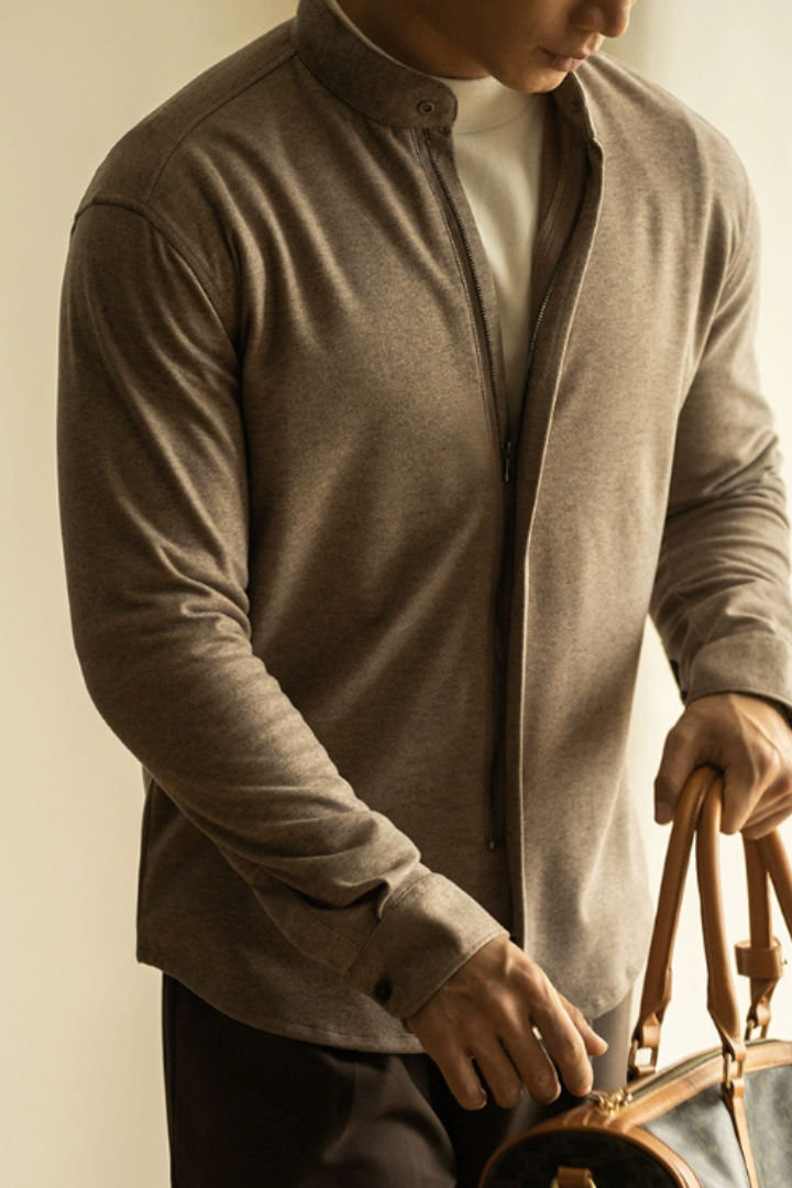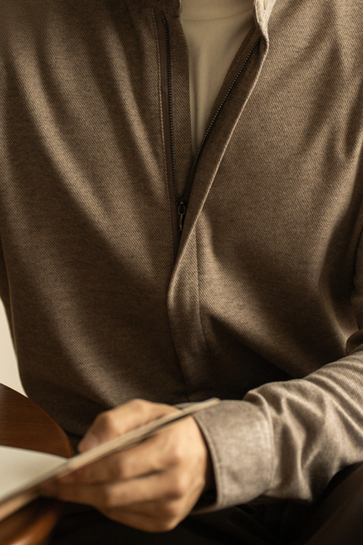 Orion Zip-Up Knit Jacket - Khaki
