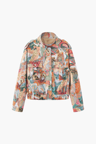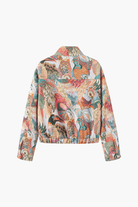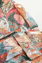 The Paloma Jacquard Jacket captures the beauty of detailed craftsmanship and vibrant storytelling. Designed with a rich, woven tapestry texture featuring intricate bird and floral motifs, this cropped jacket adds instant character to any outfit.