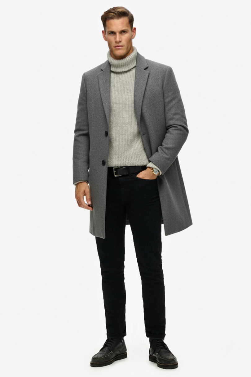 The Remington Wool Blend Overcoat is a refined winter staple built for sharp, confident style. Crafted from a premium wool blend with a smooth quilted lining, it combines classic structure with practical insulation for cooler days. Designed with a slim, flattering fit, this overcoat layers perfectly over sweaters or suits.