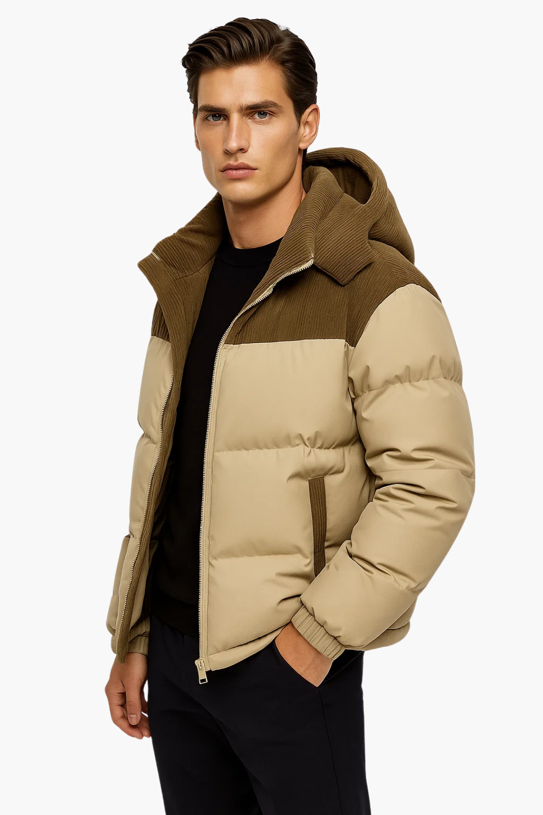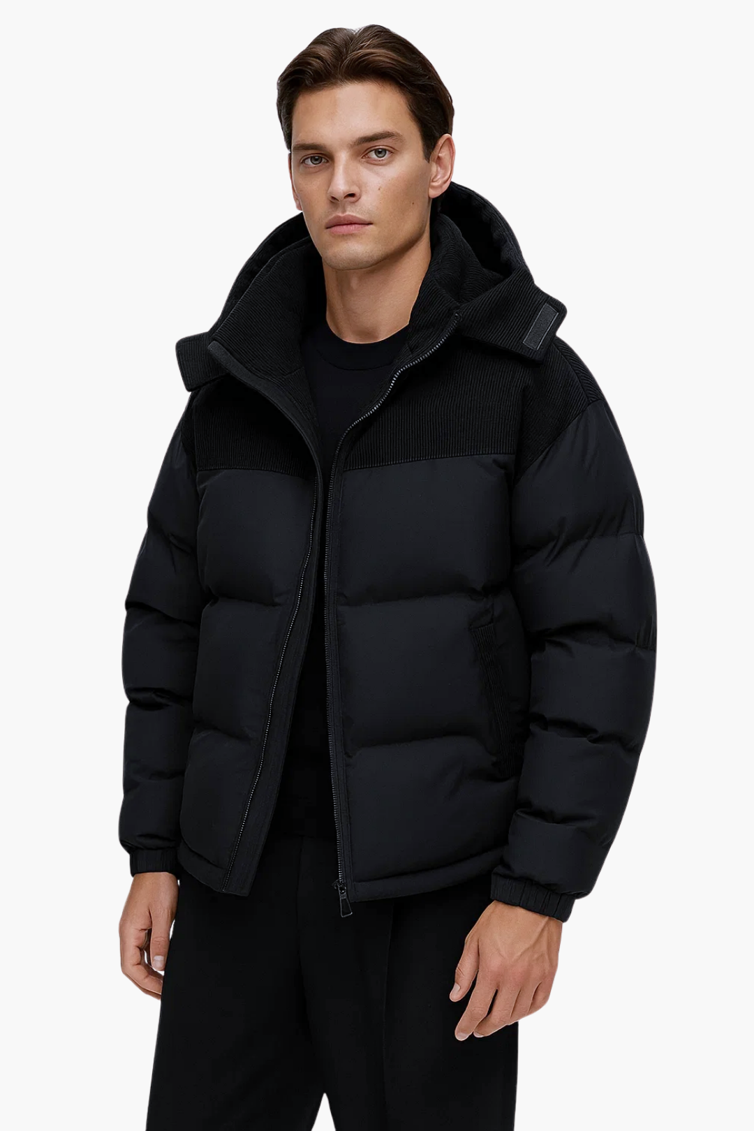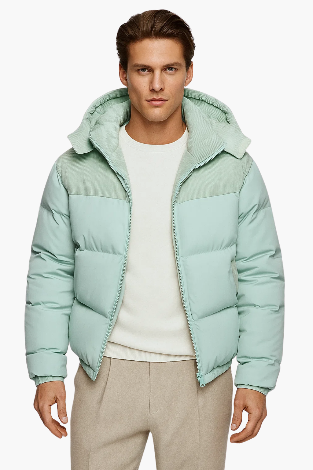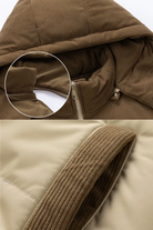Designed for comfort and style, this men’s corduroy panel puffer jacket blends soft corduroy with durable quilted fabric for the perfect winter layer. The oversized cut makes it ideal for layering, while the detachable hood adds versatility. Crafted with windproof fabric, anti-run cotton filling, and temperature-locking insulation, this jacket is built to keep you warm, comfortable, and protected in any weather.
