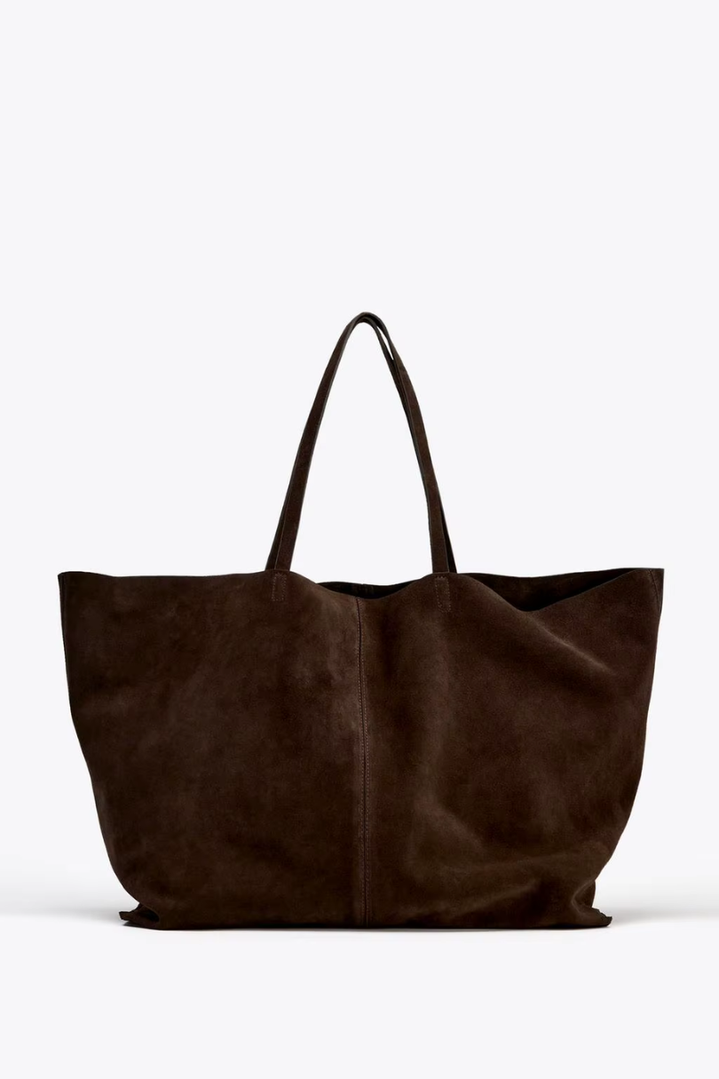 - Design: Oversized tote with minimalist, unstructured silhouette